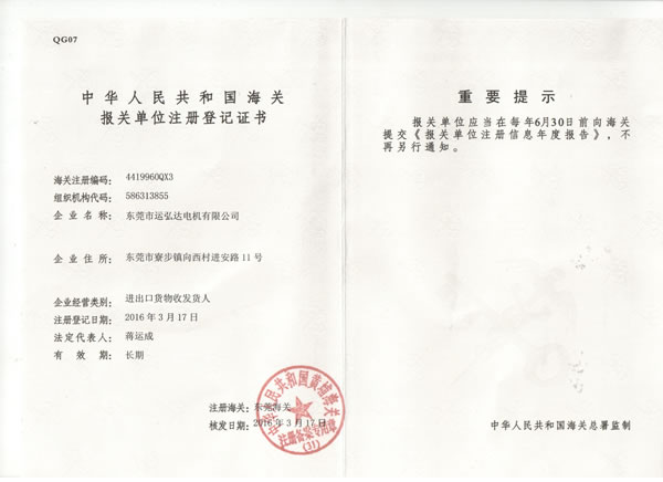 海關(guān)登記證書